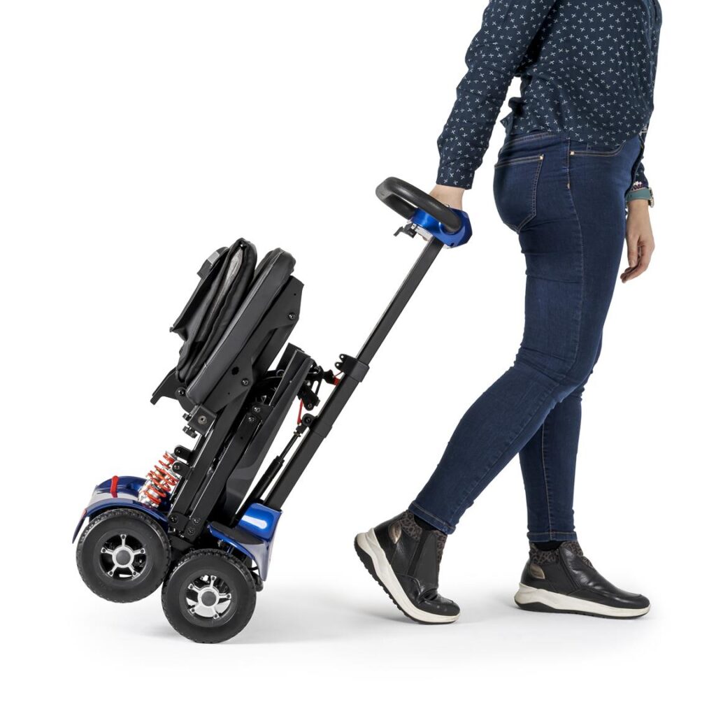 Sus 4 ruedas permiten moverla como un trolley una vez plegada.