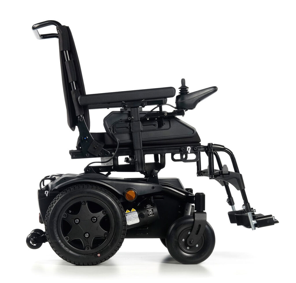 Combínala con opciones eléctricas y descubre la silla de ruedas eléctrica con tracción trasera y basculación eléctrica más compacta del mercado. La Q200 R ofrece el chasis más compacto (sólo 58 cm de anchura) con una basculación eléctrica de asiento hasta 22º y 7 cms de ajuste del Centro de Gravedad.